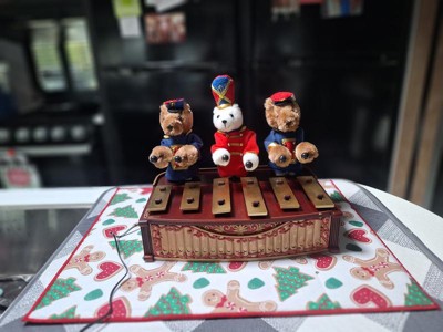 Received my Bandstand Band Bears just in time for our Thanksgiving gathering and placed it on our piano to accompany my daughter's playing for the family this week. The sound of the xylophone with the background music is warm and melodious. I love that we can switch from Christmas to year around tunes, because we decorate our house after thanksgiving. I am sure to be keeping them out all year long.