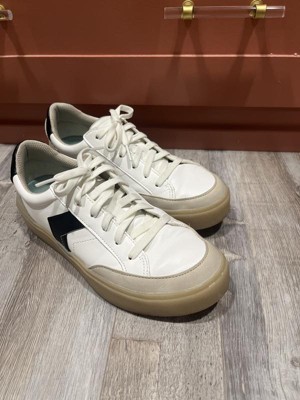 • STYLE: Womens lace-up sneakers with chevron stitch accent and 1 1/3 inch white sole or gum sole