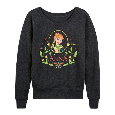 Women's Lilo & Stitch Love Grid Lightweight French Terry Wide Neck Long Sleeve Graphic Shirt - Heather Charcoal - Small