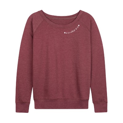 Women's Instant Message Daily Meds Inspirational Lightweight French Terry Wide Neck Long Sleeve Graphic Shirt - Heather Maroon - Small