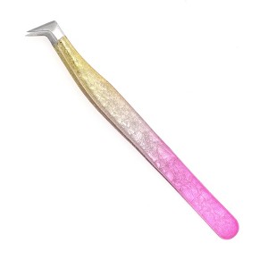 Unique Bargains Women's Durable Seven-character Eyelash Extension Tweezers Rose Red Gold Tone 1 Pc