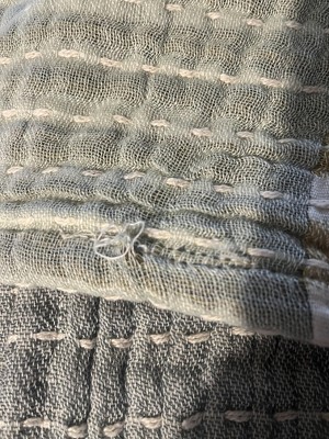Will return, reorder and hope the next is better. I wanted this especially for Easter weekend company. However, gauze throw blanket arrived wrapped with Velcro. So my review is directly to the company. Target isn't to blame for this issue. Dear Parachute, Velcro is NOT for EVERY fabric. It's especially not good for loose weave gauze fabric like your throw blanket. Especially not when the Velcro is attached under the cardboard covering which is then right next to the blanket. Why not have the Velcro attach on top? Sincerely, A dissatisfied customer.