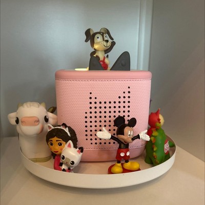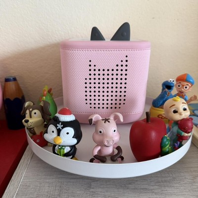 Perfect storage for TonieBox and tonies! I was using a plastic lazy Susan, but this works 100% better because the characters don’t fall over because it’s magnetic! Plenty of room for all our tonies and more!