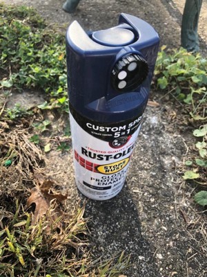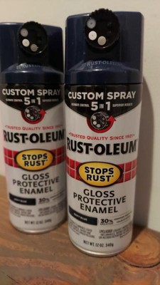 [This review was collected as part of a promotion.] I really liked the Rust-Oleum Navy Blue glass protective enamel spray paint. As you can see I needed to redue a metal flower stand that was rusted. I really liked the 5 in 1 spray adjustments as I was able to spray horizontally and vertically without getting the paint everywhere or on myself. I am glad to have a sunny day to work outside. Drying time seems to be around 24 hours however this was directly in sunlight with temperature @ 60 degrees. I was able to reapply directly after a few hours to the specific colour desired. Highly recommend makes keeping those metal Heirlooms that much more enjoyable.
