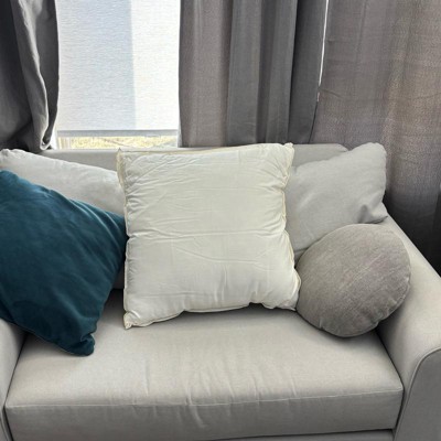 With the big comfy couches these days the larger square pillows are the way to go for throw pillows. I love the large size of the larger square pillow and the comfort it brings as I snuggle up on the big couch. The price of this pillow is on the higher end, however I do truly love the zipper opening for ease of cleaning.