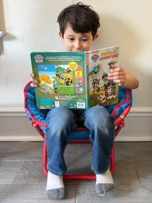 [This review was collected as part of a promotion.] We recently got the Paw Patrol Dinosaur Adventure book and my toddler son is obsessed with it! It’s a fun way to help him stay engaged by pressing the sound effect buttons while I read the book to him. One thing thing to note is that the book uses a button battery, which is included, so it is ready to go right away. However, I do recommend keeping an eye on it and making sure the battery compartment stays securely closed for safety. Overall, it is a great interactive book and definitely worth it for any Paw Patrol fan!