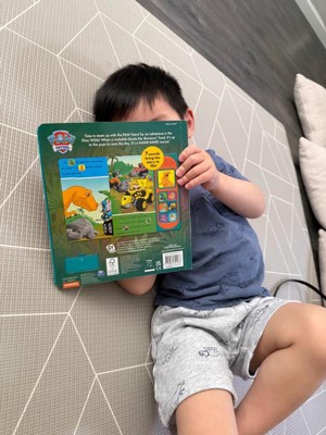 [This review was collected as part of a promotion.] My son loves this book. The sound buttons are easy to press. We love the board book material. The photos help him know which button to press. He also loves dinosaurs and paw patrol.