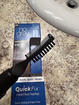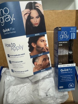 [This review was collected as part of a promotion.] No Gray Quick Fix is a waterproof formula that can instantly cover gray roots and is suitable for all shades of brown to black hair. It is easy to apply with a 3 comb applicator and can be shampooed out.