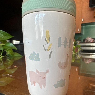 This insulated sippy cup is absolutely adorable with the farm animals. The colors are soft and too cute. This brand makes really good and durable sippy cups for toddlers and they’re even great for special needs kids too.