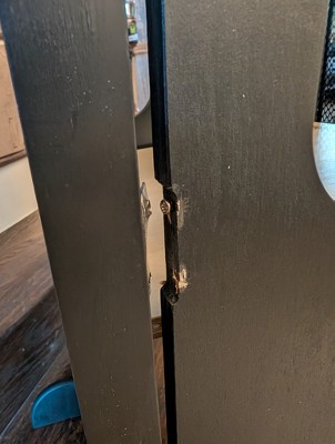 The product has had some pieces fall apart, since opening due to its flimsy hinges, factory screws coming out, and pre drilled holes not lining up. All of this has cause some frustration with the product.