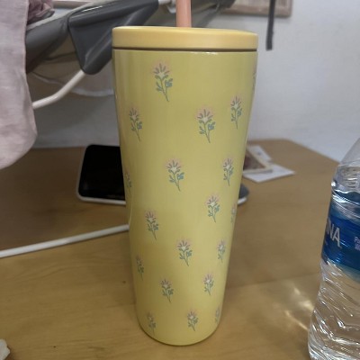 Zak Designs 30oz Vanilla Floret Stainless Steel Double Wall Vacuum Serenity Straw Tumbler Yellow