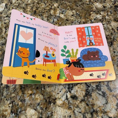 This board book is sturdy and well-made. It has nice colors that aren’t too obnoxious, but are still bright. The storyline and it is a little bit hard to follow because there is so much on each page that child is supposed to be looking for a teddy bear that’s hidden and it is really hard to find because it’s so small. I feel like it would’ve been more fun for toddlers or preschoolers if it was more obvious.