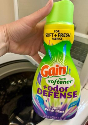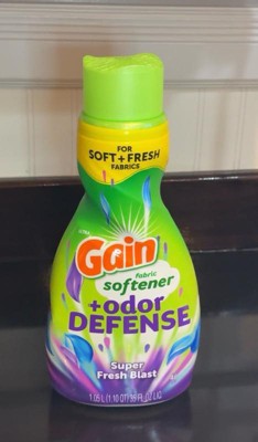Gain fabric softener + odor defense in super fresh blast is an amazing softener that also makes your laundry smell incredibly clean and fresh. The smell is so luxurious and almost sensual and makes all my clothing and bedding pop with fragrance! This softener dissolves perfectly in the rinse cycle and leaves no signs of residue or stains. The spouted tip makes dispensing easy and the cap is labeled for measurements per load. This is an exceptional value for the price as you can trust your laundry will continue smelling fresh for weeks!
