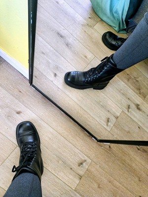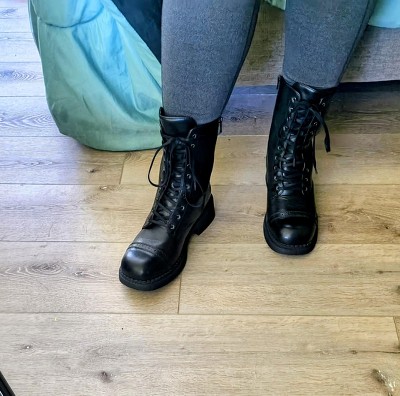 Shoe looks like it would be comfortable, but it’s not. Seems like it may take a while to break in. It also looks like a combat boot you’d love to wear. But when it was delivered it looked very costume like (a little witch-y). Not a fan after trying them on and looking at it in person. This will be returned to the store.