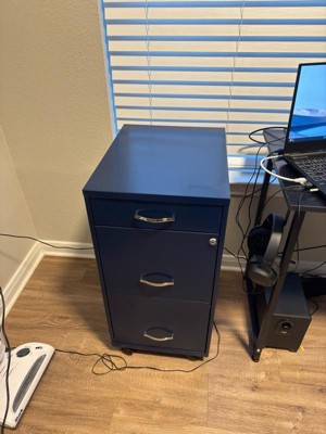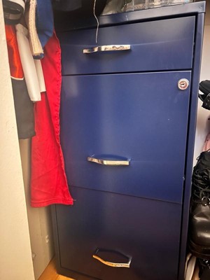 [This review was collected as part of a promotion.] I have been looking for a filing cabinet for quite a while. Some of them I looked at were not very sturdy, and others didn’t have the drawer . I knew that I wanted it to be a metal cabinet and I knew that it had to have a drawer. I really do like this seems to be a very sturdy filing cabinet . the drawers glide easily and it’s a dark blue color that fits in well with my decor. The size is about the same size as my home office desk and it works perfectly for my needs. I would definitely recommend buying this filing cabinet.