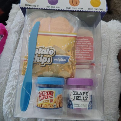 The peanut butter and jelly were super fun to spread onto the bread. Very fun to squish once done. The chips were not slime, they were foam which is why I give it 4 stars. The foam is not fun to play with in the slime.
