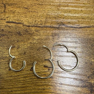 One set of the hoops had broken clasps, so they would not close once in the ear. Overall all, all three pairs are extremely flimsy and not worth the $17.99 I paid for them.