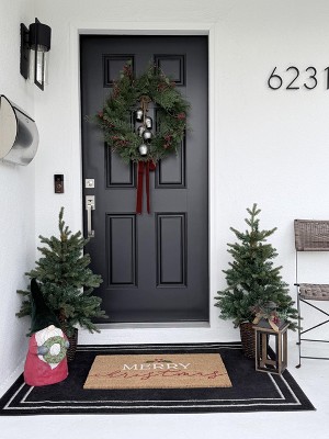 1'10"x3'11" Merry Christmas Mistletoe Coir Doormat Red