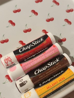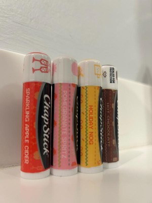 [This review was collected as part of a promotion.] I love these holiday chapsticks! My favorite is the pomegranate spritz. My son loves the hot chocolate lol. They leave your lips feeling very smooth. They also smell good.I’ve always loved this brand of chapstick.