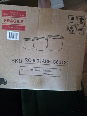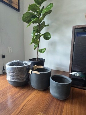 Rosemead Home & Garden, Inc. 3pc Kante Fiberglass and Concrete Indoor Planter Pots Black 13.19"x13.19"x11.02"