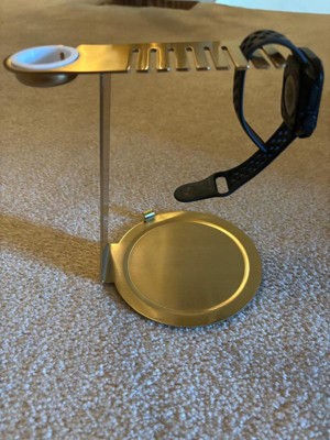 This charging stand is working great. My teenage son actually took it over. His smart watch fts perfectly in the area meant for watches. It keeps the charging cables organized for his phone and when he charges his earbuds. I like the gold - you don't see that much.