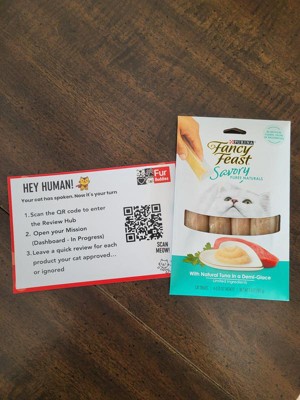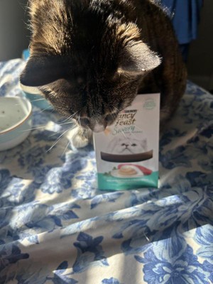 [This review was collected as part of a promotion.] #ad I received a free sample of the Purina Fancy Feast Savory Purees With Tuna Lickable Cat Treats - 1.4 oz. Box to try for free for my unbiased opinion. My cat LOVED it! I had placed it in her bowl to try. It did have some residue on the bottom of the bowl from her kibble. However, upon placing the Purina Fancy Feast Savory Purees With Tuna Lickable Cat Treats in her bowl, she eagerly went to down licking up all of her treats and the residue from the bowl with it. When she finished, she looked for more! Highly recommend Purina Fancy Feast Savory Purees With Tuna Lickable Cat Treats - 1.4 oz. Box.