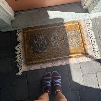 This Threshold coir doormat is both functional and beautiful. The embossed seashell design adds a subtle coastal touch without feeling overdone, and the natural and blue tones look even better in person. The mat feels thick and durable, does a great job trapping dirt, and stays in place at the door. I definitely recommend it.
