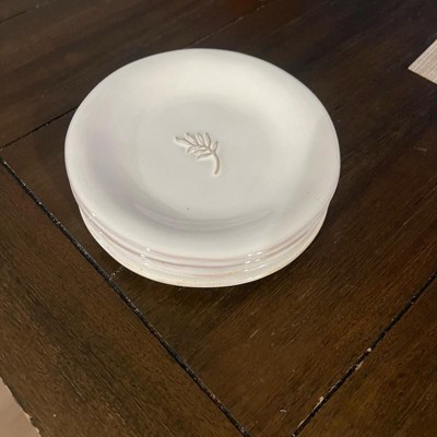 Set of 4 6.5" Stoneware Embossed Leaf Appetizer Plates Sour Cream - Hearth & Hand™ with Magnolia