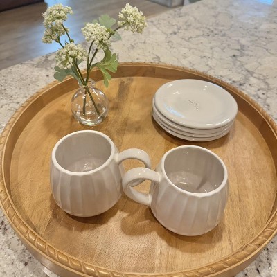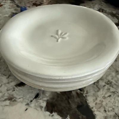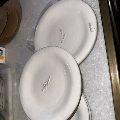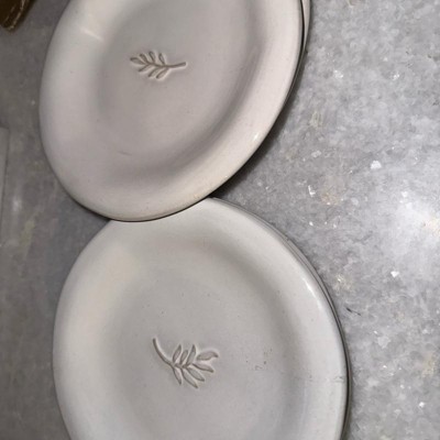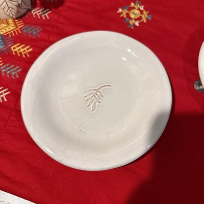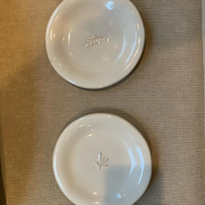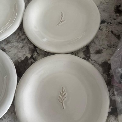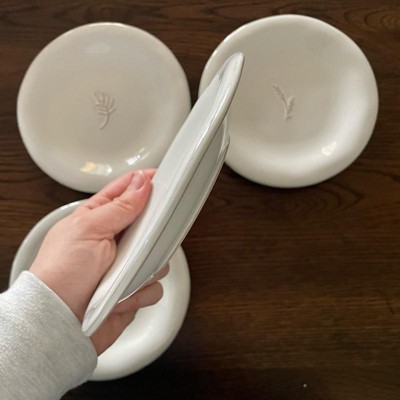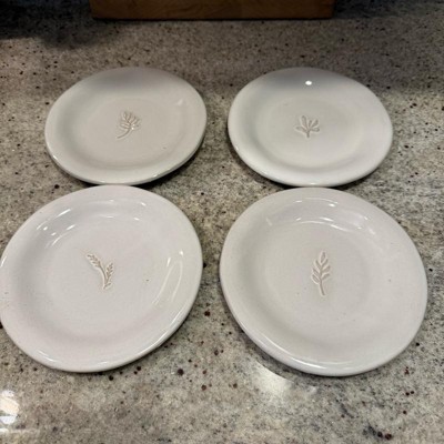I love the simplicity and beautiful design of these appetizer plates. Each of the four plates has a slightly embossed and each different leaf on the center of the plate. They are a cream color with the designs being more of a light tan color. They are dishwasher and microwave safe. I would recommend for design, quality and plates you can use daily.