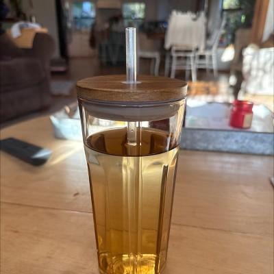 21oz Glass Tumbler with Wooden Lid Brown - Hearth & Hand™ with Magnolia