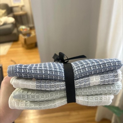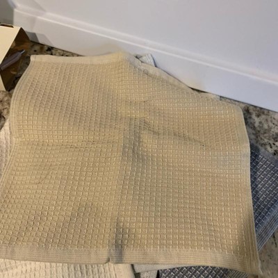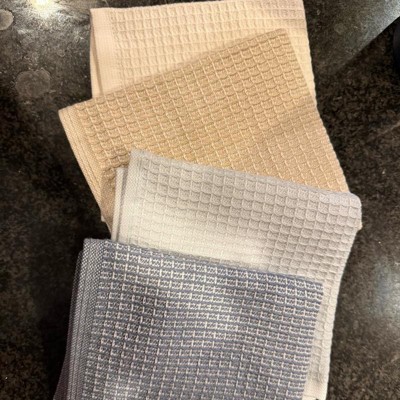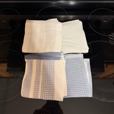 This is a beautiful set of dish towels. I really like the waffle design and I like the four colors there’s a light blue dark blue white, and tan colored dishcloth in each set. Did the dish sheet do work well with all textured plates and they actually work well for drying dishes after they’ve been washed as well.