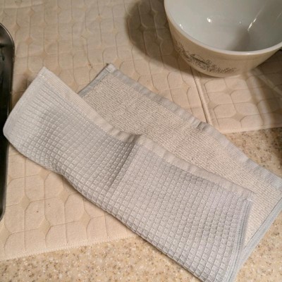 This four pack of towels was a nice, grown up, mature addition to my kitchen. It was also way over due!! These towels match my decor and colors. The backside is super absorbent. The front is great for handwashing dishes. They’ve held up well from serious use and several trips through the washer / dryer.