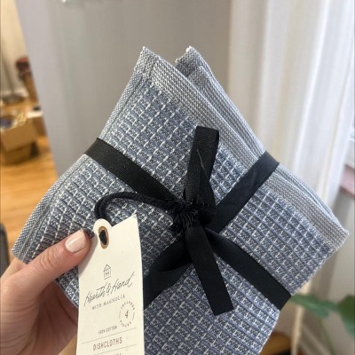 I am really loving this whole line of hearth and hand linens. The dish cloths are a decent size and the color fits well in any kitchen. I love how plush these are - even after washing them. This set comes in a pack of four (which is great for the price) and it’s definitely a good quality set of linens.