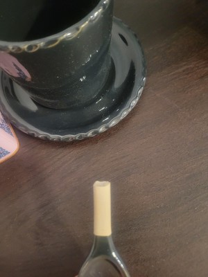 Love the tea set. Unfortunately, the spoon arrived broken. I needed this as a big part of a gift, so there was no time to return. What a shame. Nonetheless, the saucer and tea cup are in fine shape (minus the spoon). It appears to be poor packaging which in turn damaged the product.
