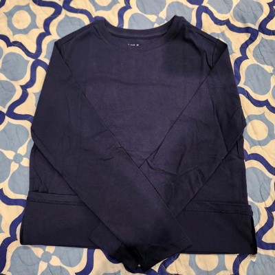 Boys' Long Sleeve Solid T-Shirt - Cat & Jack™ Navy Blue L Husky