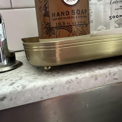 I’m using this tray in my kitchen and absolutely love it. The brass finish adds such a warm, elevated touch, and it has plenty of space for everyday essentials without feeling cluttered. It instantly makes the counter look more styled and intentional. One small note: I expected the ball feet to be a bit larger. They do lift the tray slightly off the surface (which is great for protecting the counter), but they’re very subtle and not as visible as a design detail. If they were slightly bigger, it would add even more character. Overall, it’s a versatile piece that feels both practical and polished. I’m currently using it in my kitchen, but it would be just as lovely styled in a bathroom.