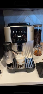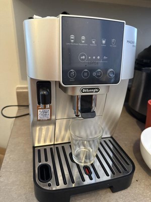 Such an amazing little product. The size is awesome. The fact that it’s all automatic is really great. I’m not a fan of the silver color. I wish it were more stainless. If I would’ve known the undertone of the silver, I would’ve gotten all black. It makes perfect espresso, perfect coffee, macchiato, and cappuccinos. I don’t have any complaints about that … what I do wish it did have the ability to steam milk so I could do my own amount of steamed or frothed milk in any kind of drink. Once you push a drink button on this machine you don’t have the ability to stop it or alter it. It is what it is.