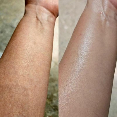 [This review was collected as part of a promotion.] This is the perfect size to take when you're going on vacation. It gives your skin a nice, but subtle glow. I do with the scent was a little less artificial smelling. The initial scent when applied to the skin smells like cocoa/chocolate. After a few minutes, it kind of has this plastic kind of scent. Since I didn't apply this near my face, it doesn't bother me too much. It does stay a bit oily on the skin, so be careful about how much you apply.