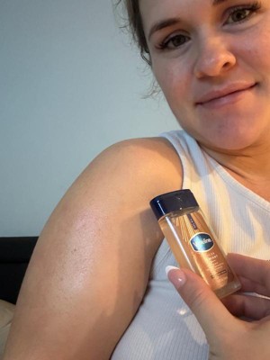 [This review was collected as part of a promotion.] The scent of this oil is super warm and cozy. It’s the perfect size to throw in your bag or travel with. The shine once applied to the body is lovely. However, I do find it sticky and leaves quite a bit of oily residue on your fingers.