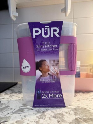 [This review was collected as part of a promotion.] The Pur 8 Cup Slim Pitcher is really pretty in the ultra violet color. It fits nicely in my fridge and holds enough water that I need for the day. Great fresh tasting water! 10/10 recommend!