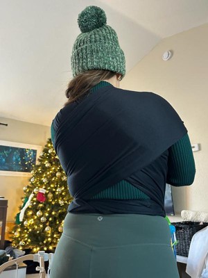 [This review was collected as part of a promotion.] I really like this wrap. It’s soft, comfy, and I absolutely love the black color. I will say the tag is an issue. It’s just the placement of it really, and it’s huge, making it a bit uncomfortable.