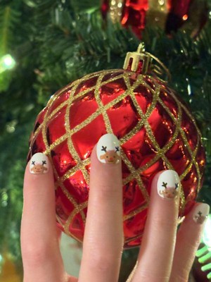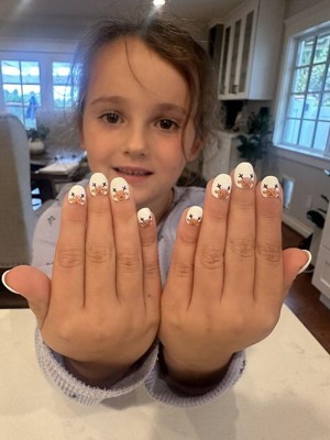 [This review was collected as part of a promotion.] This is my daughter’s 2nd time applying pressies. I’m so proud of my daughter for doing these nails all by herself! The design is absolutely adorable, with a lovely mix of colors and holiday cheer. She was able to easily follow the directions and apply them. There were plenty of sizes to choose from for her small hands and the length needed no trimming and is very age appropriate!