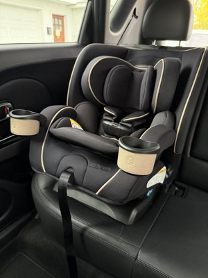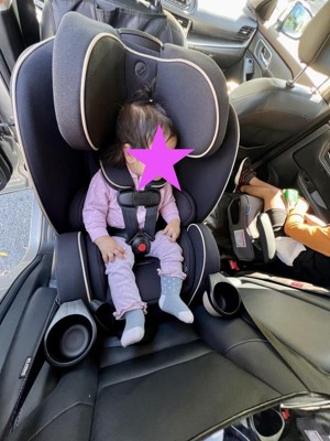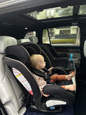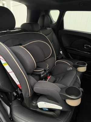 [This review was collected as part of a promotion.] Love this seat! one seat that’ll last from baby to big kid without taking up the whole backseat is perfect for me. I don’t want to have to buy a new seat every time we hit a carseat maximum height or weight. Installation was easy and straight forward. I actually installed it into my standard size SuV and then our smaller four door sedan and it fit perfectly in both. it feels like a super sturdy quality product. The material is soft and a great color for hiding dirt. My favorite part is the dual cup holders — because we absolutely need a toy or snack and a drink at all times. It’s easy to get my toddler in and out and he looks super comfy when strapped in. totally parent-approved! Thanks to stellar testing panel for sending me this product!!!