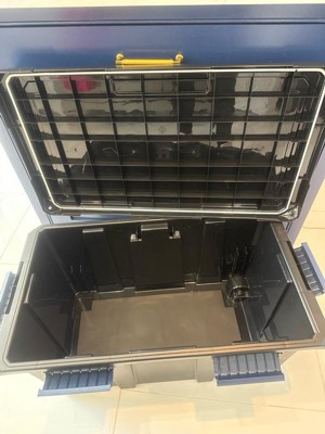 [This review was collected as part of a promotion.] I love that this tote has wheels. So easy to move around. I also like that it has 6 clips to close the lid, so you know it’s securely closed. Great size and seems like it will be very durable.