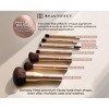 Crafted with a luxe matte gold finish, each brush features densely packed premium vegan bristles for seamless application and blending. Ergonomically designed for comfort, with signature weighted ends to ensure perfect pressure and control. Premium fibers retain shape after multiple uses and washes for long-lasting performance.