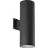 Introducing the Fluorescent Porcelain Wall Cylinder from Progress Lighting. This sleek and contemporary fixture features a black finish and measures 6" in width, 18" in height, and 6" in length, with a depth of 8.88". The height from the outlet box is 8", and the backplate width and length are both 4.5". This wall cylinder uses halogen lamps, with a total of 2 bulbs and a wattage of 250 watts. It is damp rated, making it suitable for both interior and exterior applications in residential and commercial settings. The modern design includes a die-cast aluminum wall bracket and heavy-duty aluminum framing, providing even illumination up and down. This fixture adds panache and sophistication to outdoor spaces, making it perfect for today's inspired exteriors. With its elegant design and durable construction, the Fluorescent Porcelain Wall Cylinder is an impeccable modern accent for any space. Shade included.