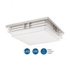 Illuminate your space with the sleek Helm Collection LED fixture. Crafted from durable steel with a brushed nickel finish, this 14" wide and 3.75" high flush mount light is perfect for rooms with limited ceiling height. The Helm features clean lines and a square shape, complemented by an acrylic diffuser that softens the light to create a warm ambiance with a color temperature of 3000 Kelvin. With a high CRI of 90, the two 17-watt LED bulbs deliver a bright 1345 lumens, ensuring true color and clarity. It can be mounted on the ceiling or wall, making it ideal for a variety of settings. With a damp rating, it's suitable for use in moisture-prone areas. The Helm fixture includes a matching canopy and shade, ensuring a cohesive look. Embrace energy efficiency and contemporary style with the Helm LED fixture.