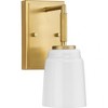 The Spenser vanity light has a streamlined design finished in subtle Brushed Nickel contrasted by machined industrial-styled knurling. A rounded opal glass shade softens the fixture�s industrial look.�The versatile fixture can be mounted with the shade facing up or down to suit your preference. The vanity light is perfect for powder rooms and bathrooms / The light's mechanical styling is ideal for Industrial and Soft Modern settings / A Brushed Nickel finish emphasizes the fixture's knurled design / An opal glass shade softens the industrial style of the light and provides subtle illumination / Mount the light fixture with the glass facing up or down for more design flexibility / Uses (1) 100-watt max medium base bulb or LED equivalent, that is sold separately, and dimmable when used in conjunction with a dimmable bulb / Measures 4.5-in. width by 10.62-height, extends from wall 5.75-in. / Certifications: Damp location listed, fixture can be used in rooms where moisture may be present