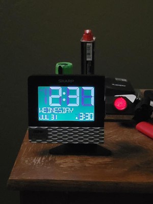 Straight out the box it was hard to read once plugged in. I had to angle it so that it was right in front of me in order for their not to be numbers that disappeared or faded. Then I went to set it and it was not intuitive or user friendly. I'm great with technology and this was just like nope you're going to have to read the manual. Which is fine. I never even tested the projector side of things because the regular clock was just so bad. This item really shouldn't be for sale. Any amount you pay is too much. They all need to ship back to the factory. I should have never bought it when I noticed that every single one of them that was on the shelf had been returned. Target send these back to Sharp.
