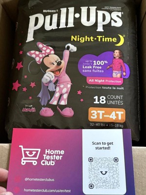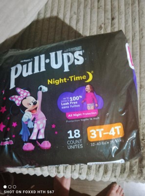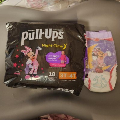 Make potty training a routine with Pull-Ups Night-Time Training Pants for Girls! Pull-Ups Night-Time Potty Training Pants absorb up to 25% more than diapers* and are up to 100% leak-free with extra absorbency compared to our other Pull-Ups products. Not only that, but these potty training underwear deliver up to 12 hours of overnight protection where girls need it most. Refastenable, easy-open sides allow you to keep clothing on your toddler for quick changes, even in the middle of the night. Each Pull-Ups training pant is made with soft and breathable materials, so your Big Kid can stay comfortable as they sleep. They also feature stretchy sides and an underwear-like fit so you can train consistently from day to night. Our nighttime potty training pants feature Disney designs of Minnie Mouse, with graphics that fade when wet to help your child learn and celebrate dry nights. No matter where your child is in her potty training journey, the Pull-Ups brand can help. Visit the Pull-Ups website for expert articles, tips and potty training resources. We've helped train 60 million Big Kids and counting! Pull-Ups Night-Time Girls' Training Pants are available in sizes 2T-3T (16-34 lbs) and 3T-4T (32-40 lbs). (*vs. size 3-5 Huggies Little Movers diapers)